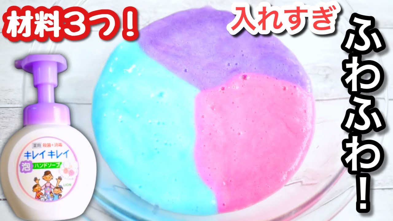 DIY ハンドソープを使った巨大ふわもこスライムの作り方 slime ASMR- YouTube。