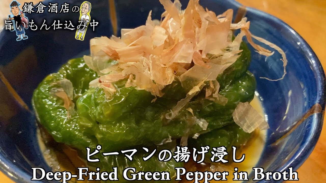 ピーマンの揚げ浸し ピーマンを丸ごと素揚げにし揚げ浸しにしまた。種ごと召し上がれます。 Deep-Fried Green Pepper inBroth。