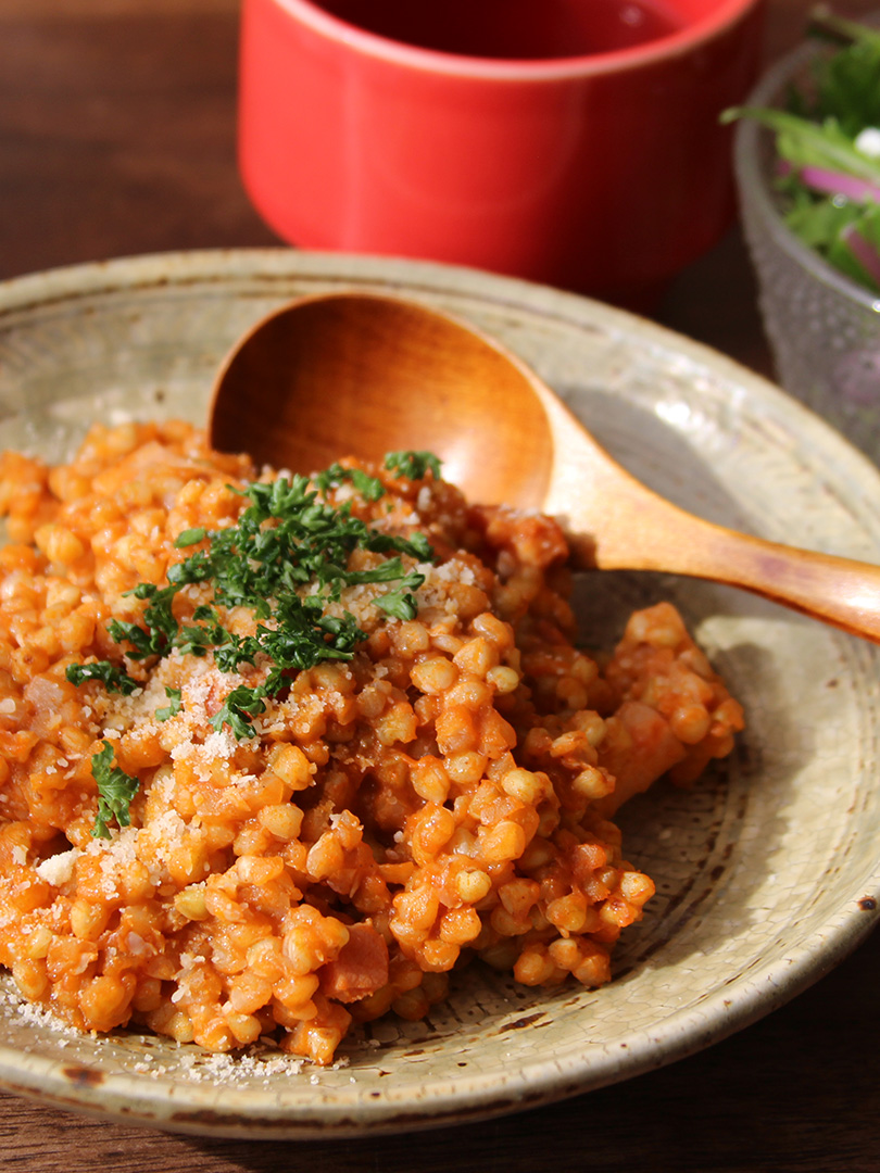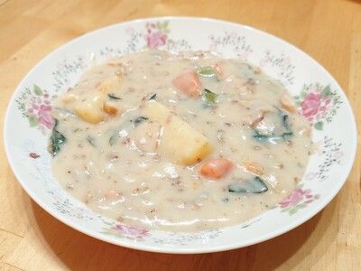 食べ応えばっちり♪ そばの実とたっぷり野菜のスープ。