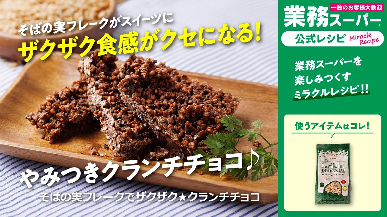3ステップ そばの実フレークでザクザク☆クランチチョコ業務スーパーミラクルレシピ - YouTube。