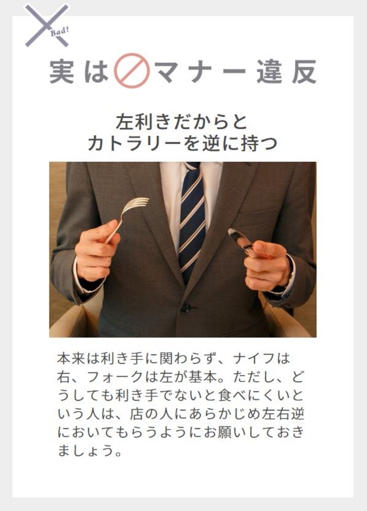 ナイフ&フォークの意外と知らないマナーチェックインバリ。