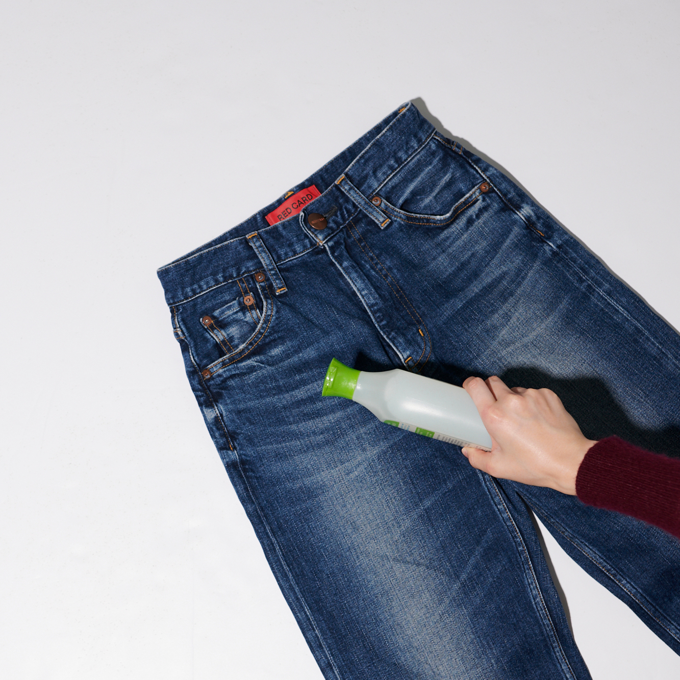 ジーンズ・デニムの油染みは生活洗剤で簡単に落とす。