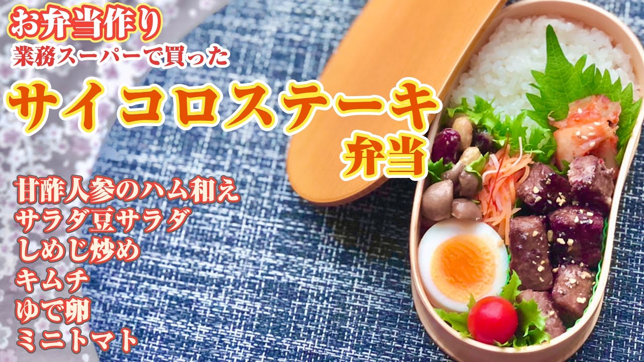 お弁当作り 業務スーパーで買ったサイコロステーキのお弁当。