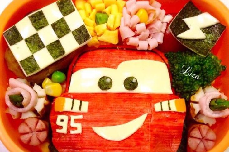男の子が喜ぶキャラ弁作ってくださいってリクエストもらったのでこども達が好きだったカーズ作ってみました!,でも作ってから気付いたけど、今の小さいお子さんは知らないかな??,子ども達も大きくなって、すっかり人気キャラの流行りもわからなくなってるので良かったらコメントで教えてください🙏 **************他にもたくさんのキャラ弁レシピを投稿しています🍱, 投稿はこちらから→。