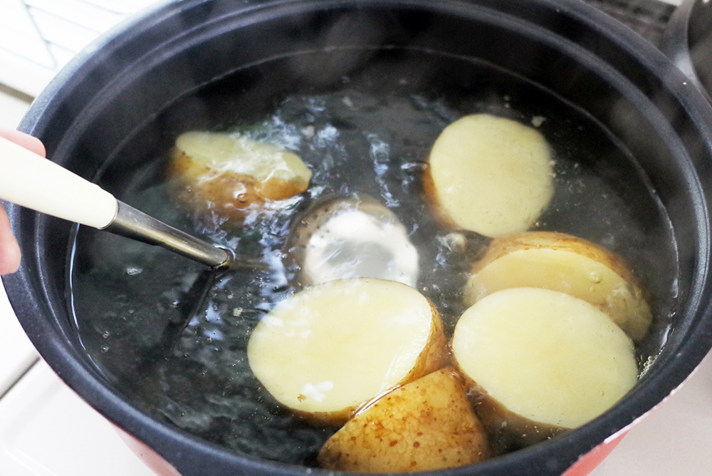 じゃがいものゆで方を工夫して、甘みを引き出す。
