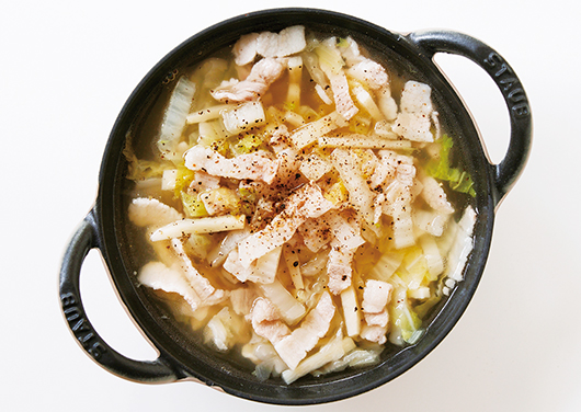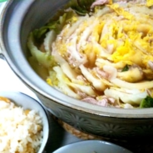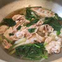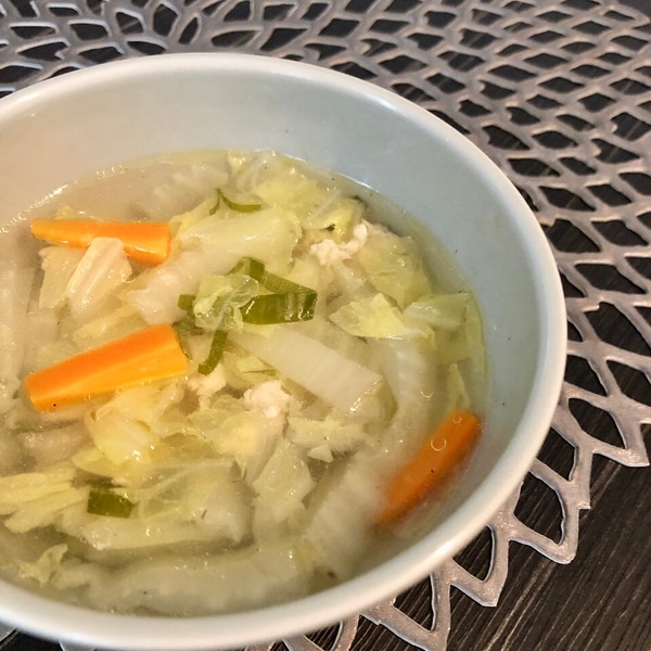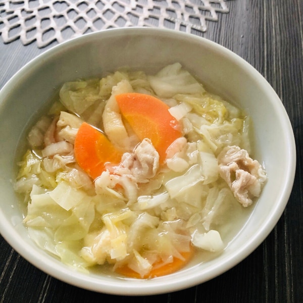 茅乃舎のだし☆豚肉と白菜、キャベツのあごだしスープ。