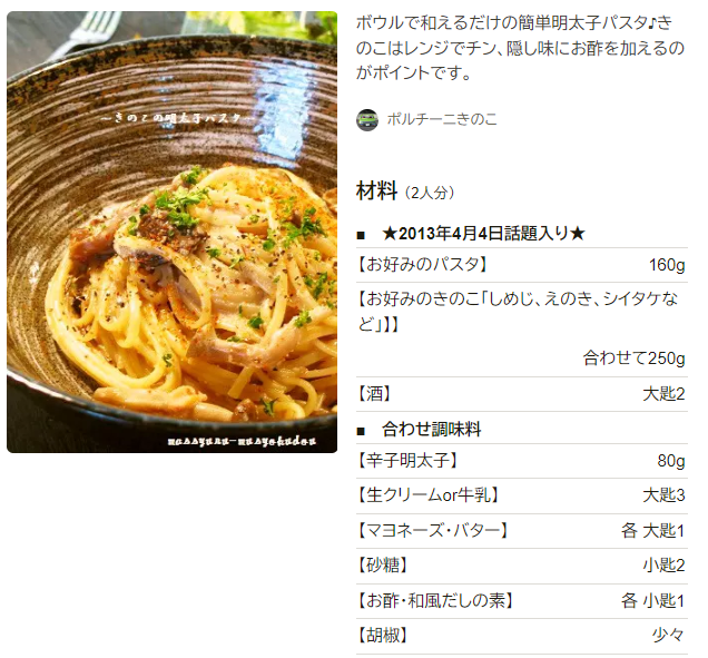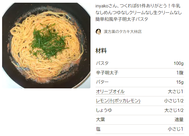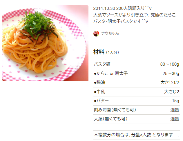 明太子パスタレシピ 人気1位・殿堂入り クックパッドつくれぽ1000越え夕食のおかず.com。