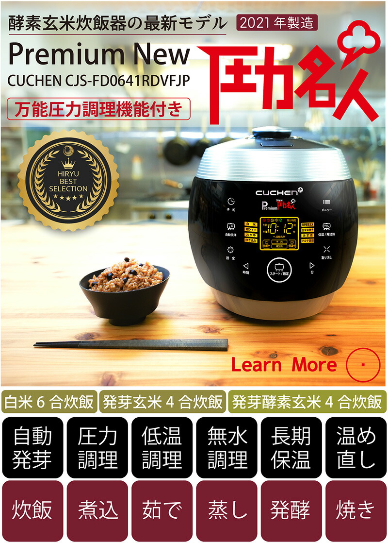 公式サイト 発芽酵素玄米炊飯器 Premium New 圧力名人 蒸し器地球環境と健康を考える HIRYU。