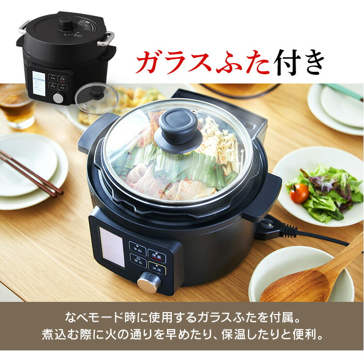 電気圧力鍋 2.2L アイリスオーヤマ 大容量 鍋 炊飯器 米 白米 低温調理 無水調理 圧力調理 煮込み 発酵 簡単 手軽 料理 保温 コンパクトホワイト レシピブック 蓋付き 白 ホワイト 黒 ブラック PC-MA2 PMPC-MA2 PC-MA2 送料無料公式 電気圧力鍋 2.2Lアイリス。