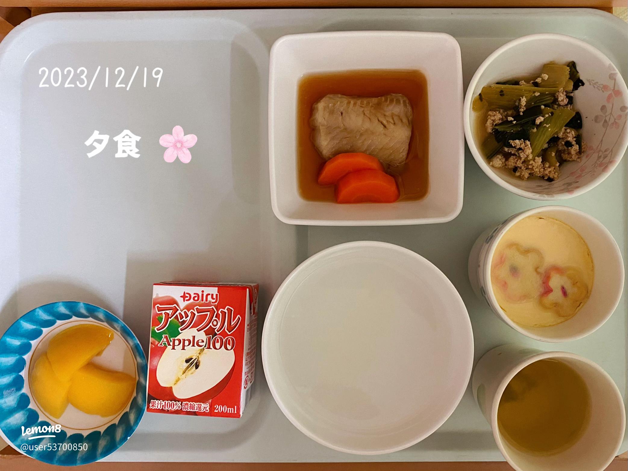 入院4日目の夕食。一般食 五分粥 に変わりました。 お粥が五分粥になって量も二倍に。おかずも固形物で汁には具も入っています。久しぶりのちゃんとした食事。で、食事中に担当医が来て明日の退院が決まりました。