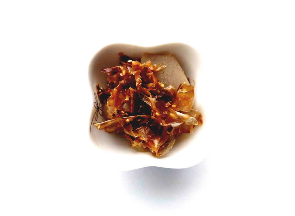 ごま油香る♬︎柔らか味しみ大根とピリ辛こんにゃくのヘルシーおつまみ🥢大根は小さく切ってレンジ加熱すれば 時短で柔らかくなります ^^ 👌こんにゃくと一緒にごま油で こんがり焼いて、甘辛い味付けに かつお節とごまをたっぷり🙈♬︎ おつまみやお弁当。