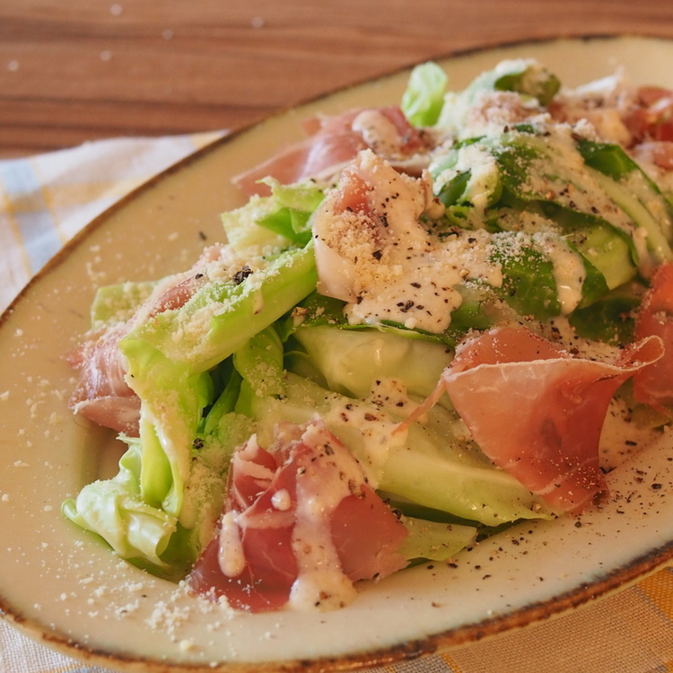 春キャベツと生ハムのシーザーサラダのレシピトクバイ。