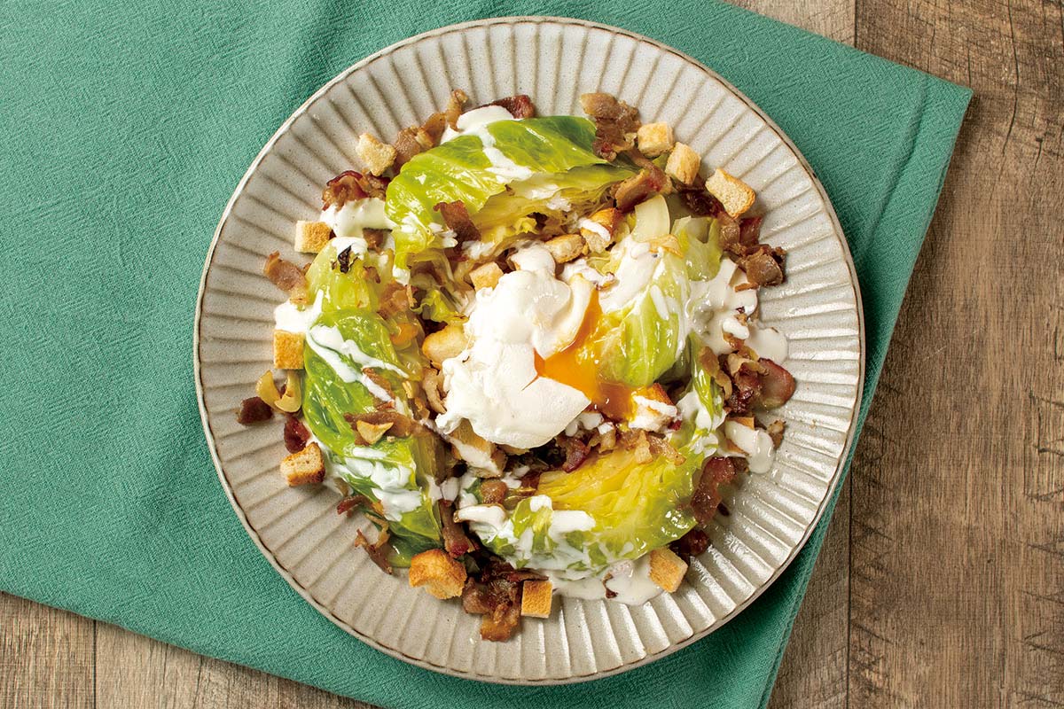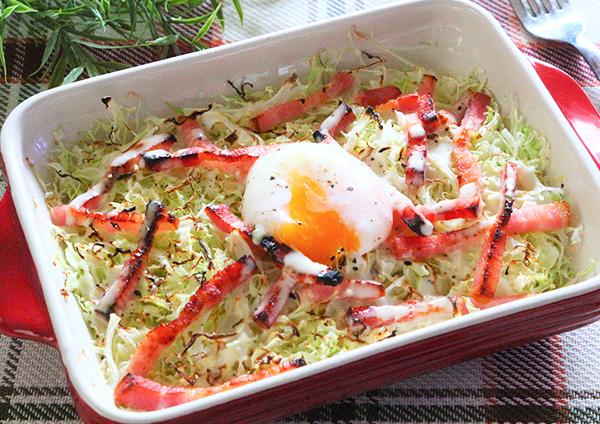 温玉を絡めて召し上がれ♪焼きキャベツのシーザーサラダ。