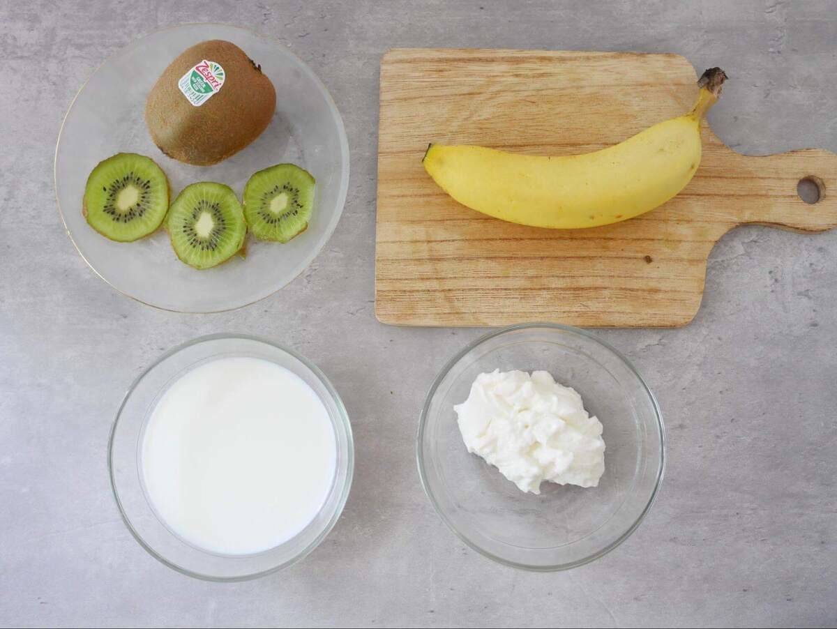 キウイは美肌の為に皮ごといきます🥝, ビタミンCやE食物繊維に葉酸カリウムなどキウイの皮には栄養がたっぷり、でもゴワゴワした皮は食べ辛い ,そんな時は!丸ごとスムージーにしよう!!, 粉砕しちゃえば皮も気にならない!!パワー!!💪🏻, という事でバナナと一緒にスムージーにしたよ〜,スムージーにすると驚くほど皮を感じなくなるので是非お試しを🙌🏻,材料 , バナナ1本, キウイ1個,。