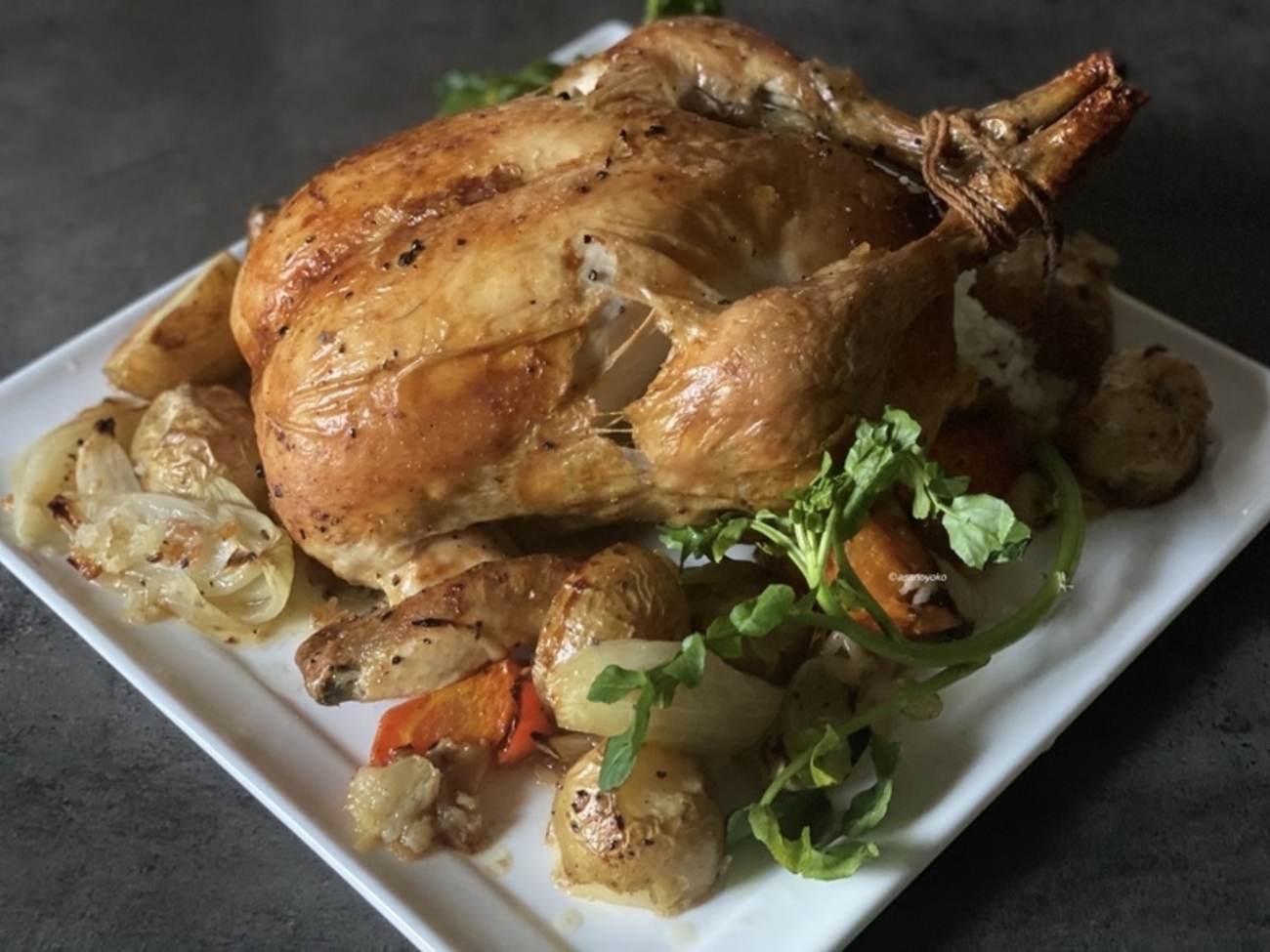 低糖質レシピ 詰め物無し&紐で縛らない、オーブンで放置する丸鶏のローストチキン - KOMZAP。