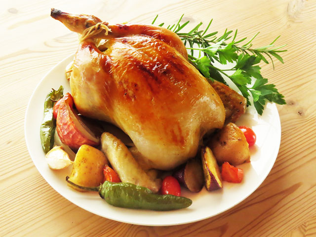 丸鶏でローストチキン無農薬・有機野菜・無添加食材レシピ。
