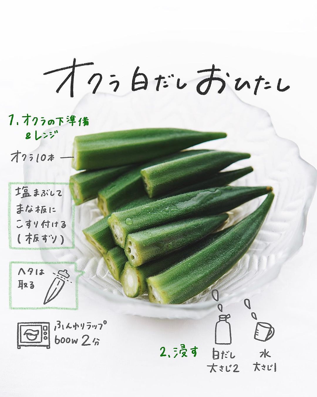 オクラ」を白だしに漬けるだけ。意外と知らない「オクラのおひたし」レシピ。