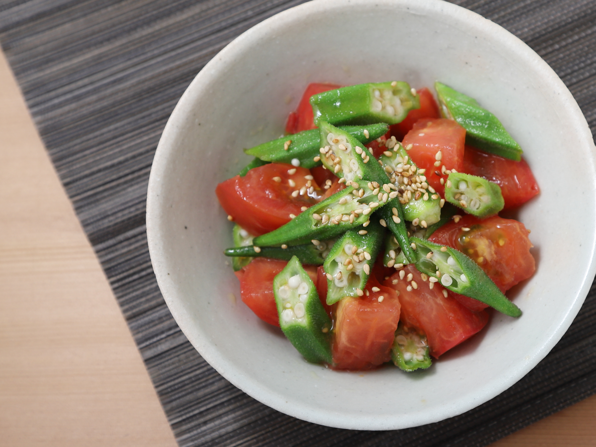レンチンオクラとトマトのおひたし風サラダ。