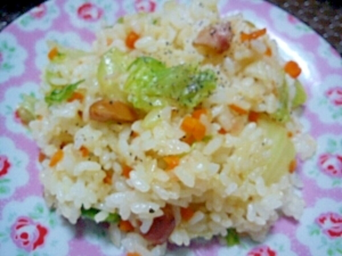 簡単♪即席♪残り野菜でパパッとフライパンピラフ。