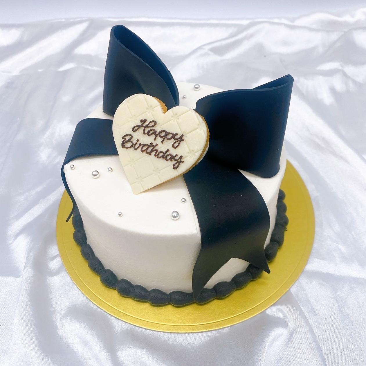 シンプルセンイルケーキ りぼん黒–オーダーケーキの通販・専⾨店 ⼤阪堀江のルナコーボーLunaKOBO。