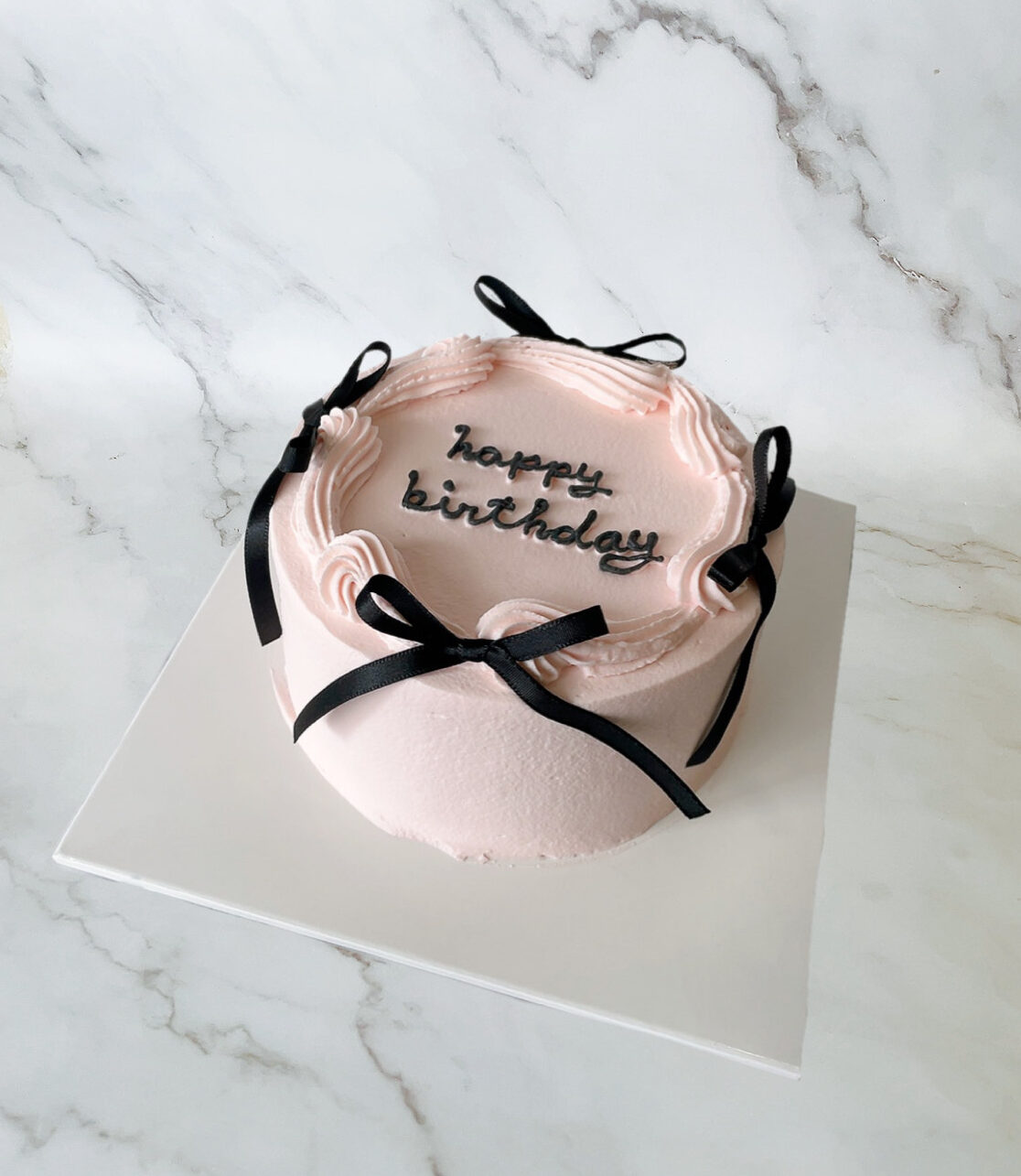 オーダーリボンケーキ 4号 誕生日ケーキのご注文です🎂 全体をくすみピンクと淡いくすみピンクの 2色でおまとめ🎀 リボンは黒をご希望🖤誕生日おめでとう 誕生日 誕生日プレゼント 特別な日 オーダーケーキ イメージケーキ リボンケーキセンイルケーキ韓国ケーキ。