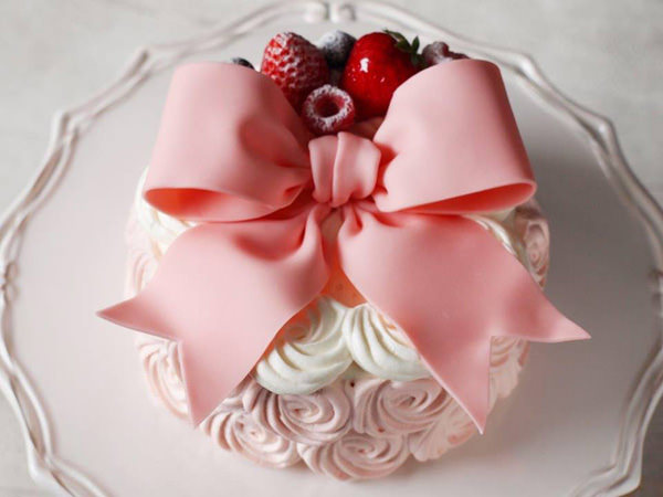リボンケーキ ピンク–オーダーケーキの通販・専⾨店 ⼤阪堀江のルナコーボーLunaKOBO。