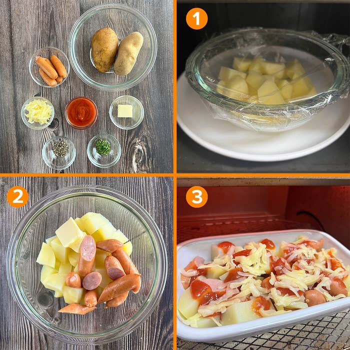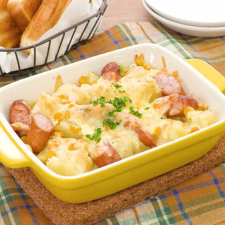 チンして焼くだけ!じゃがいもとウインナーのピザ風チーズ焼きのレシピ・作り方Tasty。
