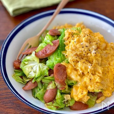 子供が喜ぶ☆ウインナー・キャベツ・卵炒め☆。
