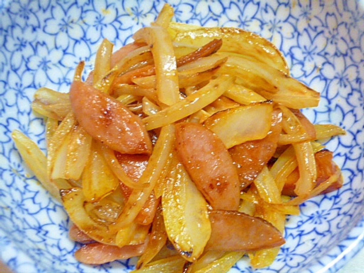 子供が喜ぶ♪玉ねぎとウインナーのマヨケチャ炒め。