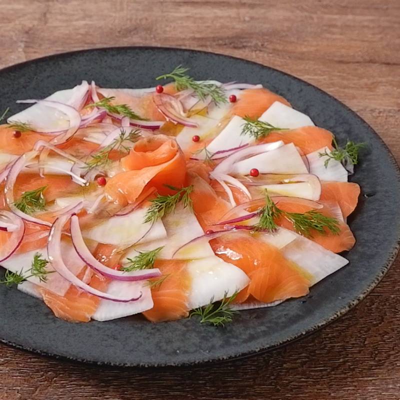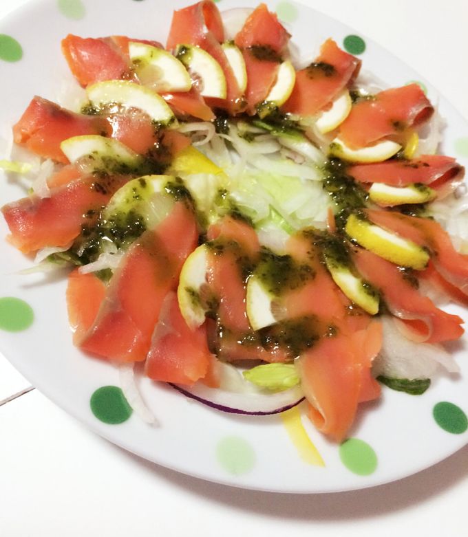 スモークサーモンのカルパッチョのレシピ海外レシピ専門サイト『My Kitchen』世界の料理レシピが満載。