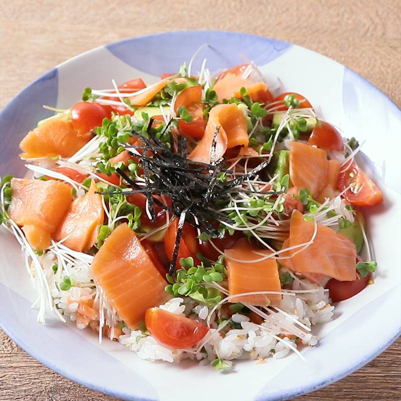 生サーモンと炙りサーモンののっけ盛り - レシピナビ。
