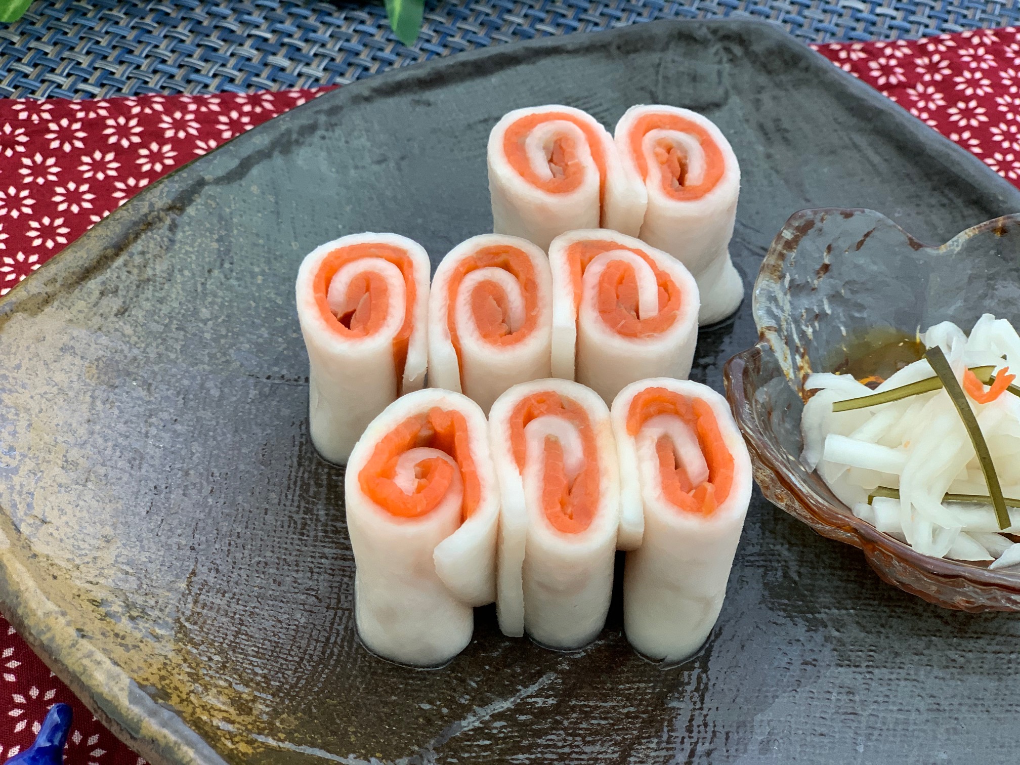 千枚漬とスモークサーモンの おつまみ - レシピ - 泉州水なす 堺共同漬物株式会社。