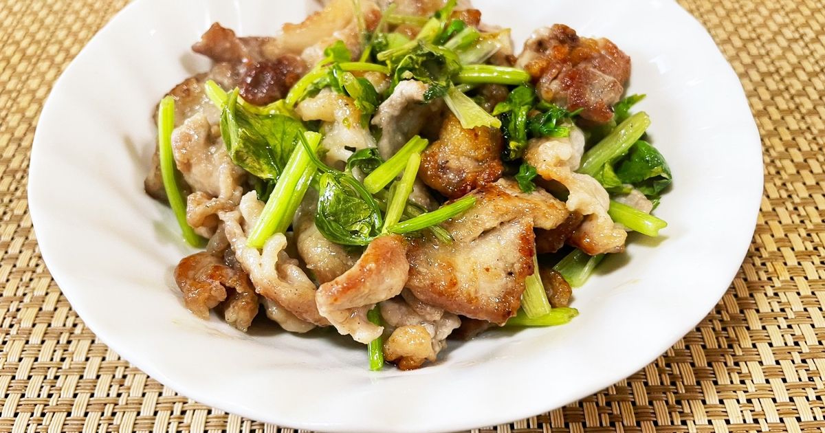 豚肉とぶなしめじのパクチー炒めmovinow。