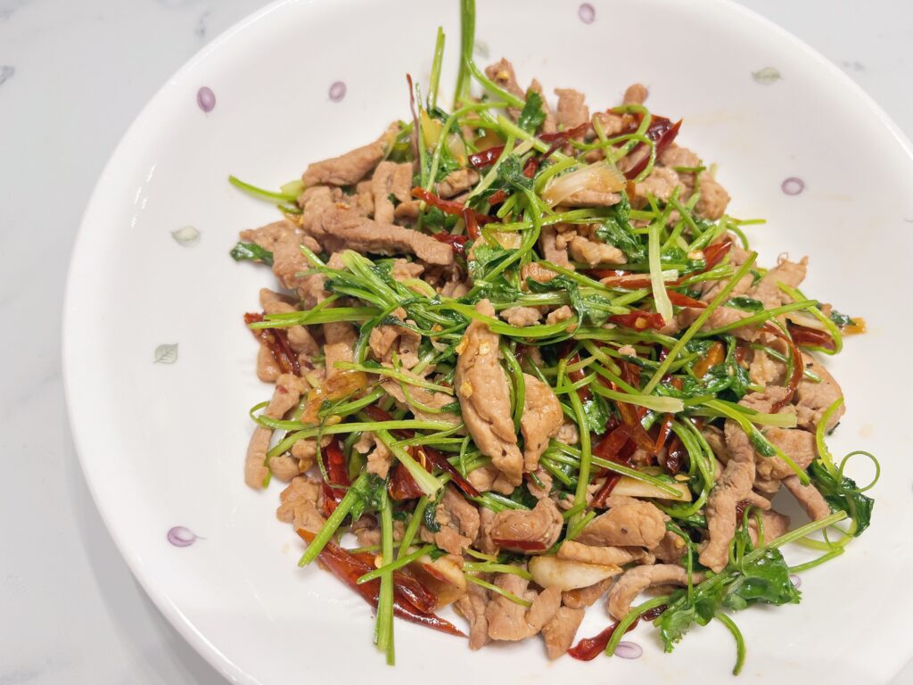 パクチーたっぷり ピリ辛豚肉炒め -香辣肉絲 シャンラーロウスーRuyee Blog。