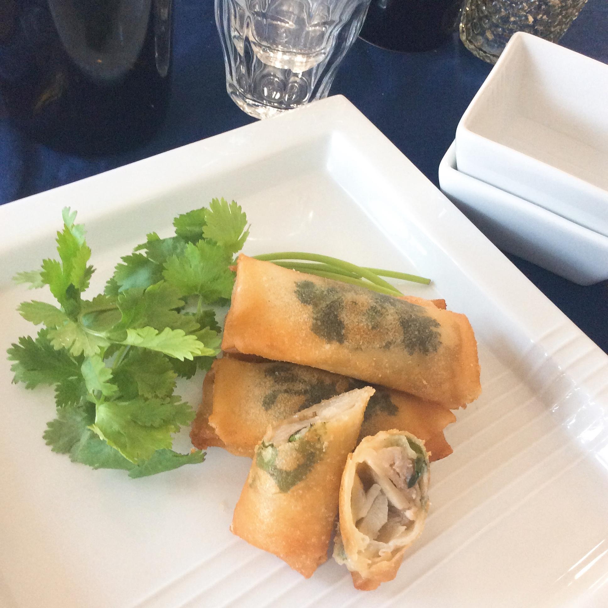 パクチー香る豚ひき肉のピリ辛生春巻き。