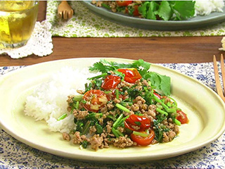 豚肉とパクチーのスパイシー炒めレシピエスビー食品株式会社。