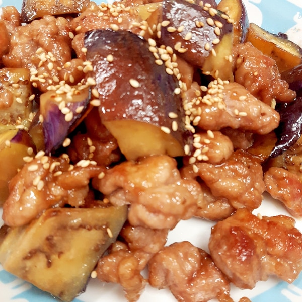 なすと豚肉の甘辛炒め♩ ノンオイルでもこっくりレシピ・作り方。