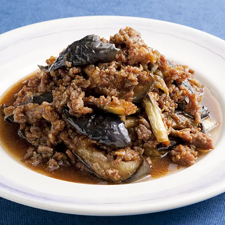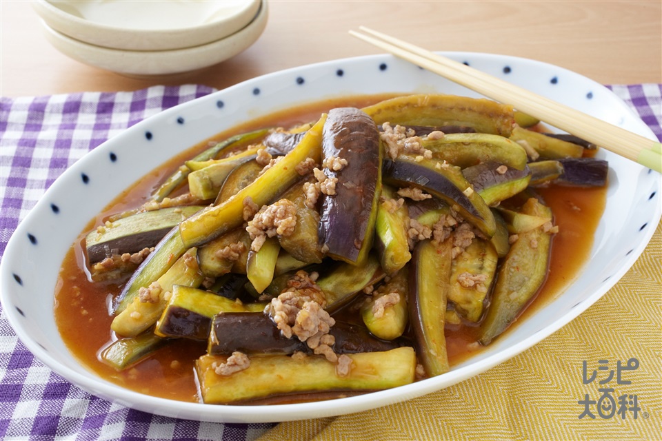 ご飯がすすむ!甘辛酸っぱい、なすとひき肉の炒めもの。