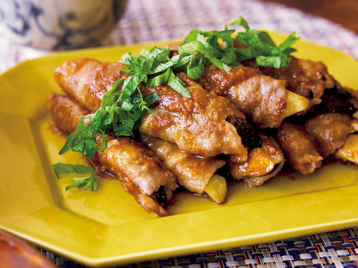 ジューシーな甘辛味「なすの豚肉巻き」。