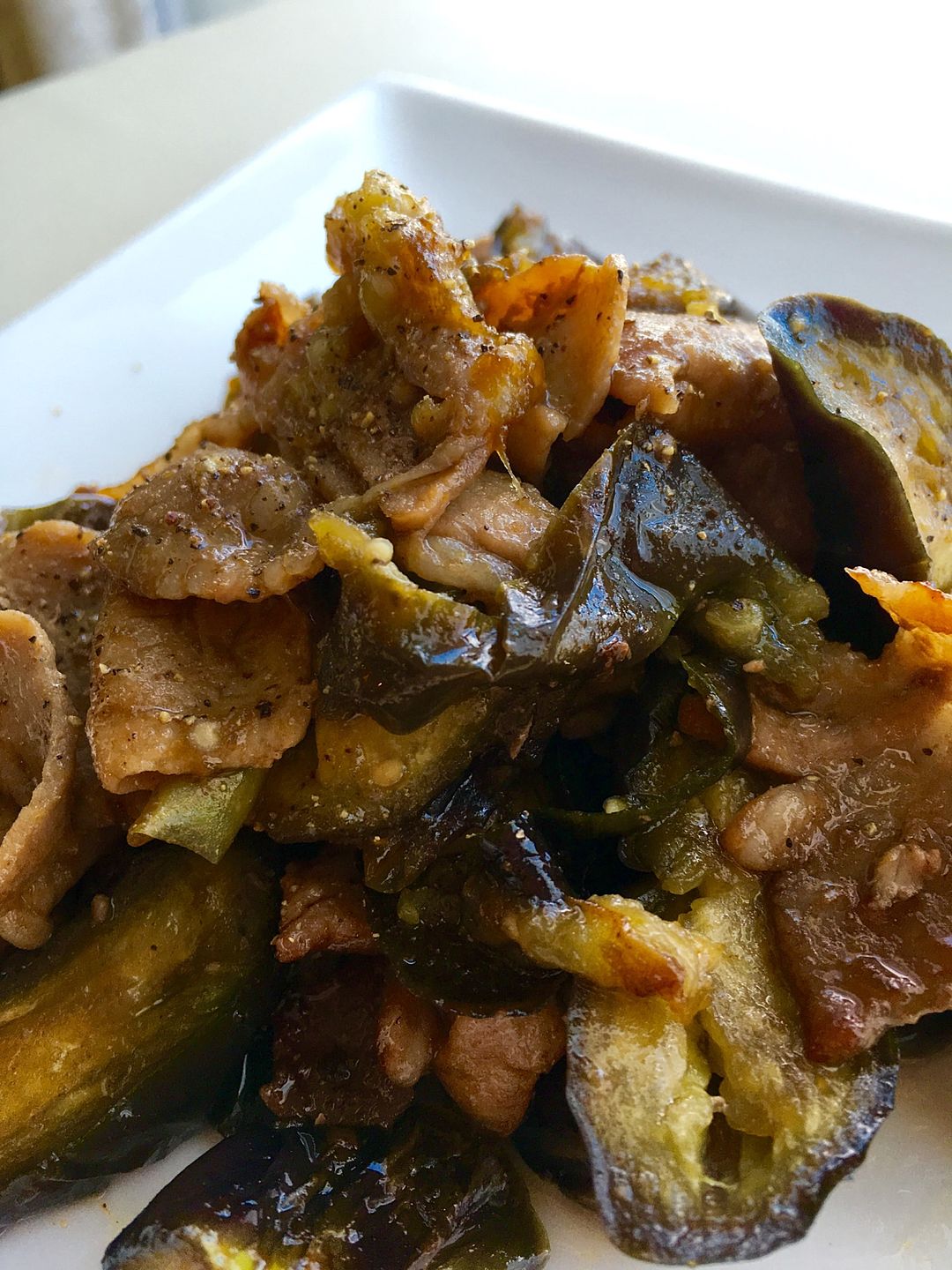 極コク旨〜!!豚バラなすの甘辛炒め。