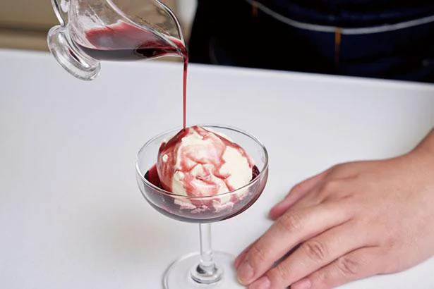 濃厚バニラとカシスのハーモニー! リキュールをかけていただくオトナ味 魔法のアイスレシピ 8- レタスクラブ。
