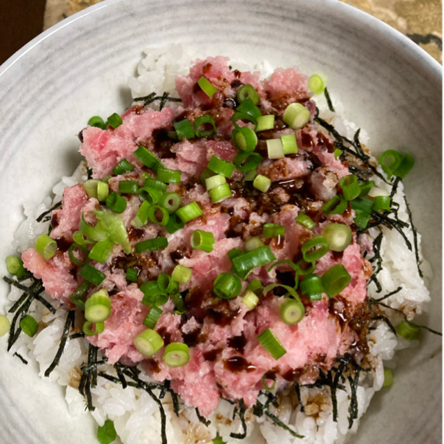 男子1人ご飯☆スタミナねぎとろ丼。