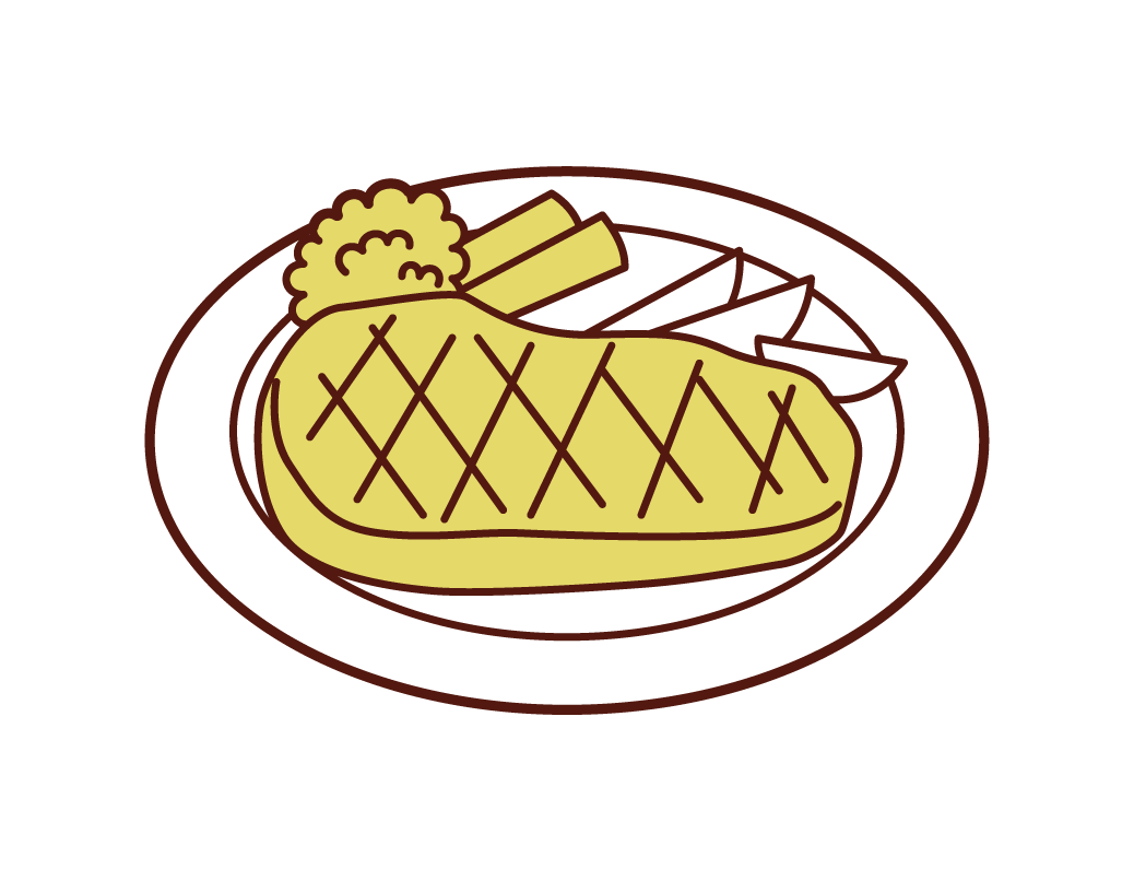 ビーフステーキのイラスト: ゆるかわいい無料イラスト素材集。