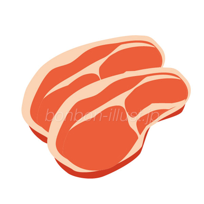 肉簡単イラスト:かわいい肉ステーキ:切り身無料イラスト素材 ボンボンイラスト。