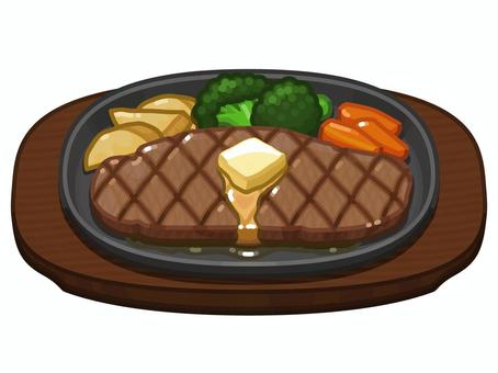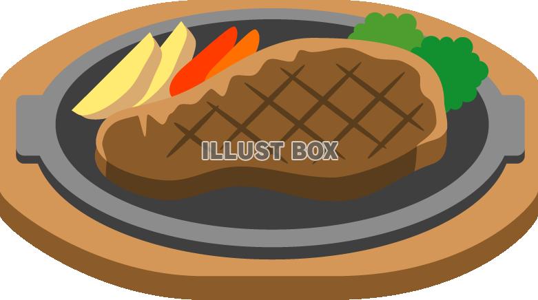 鉄板にのったステーキの無料素材 - イラスト沖縄 おきなわ。