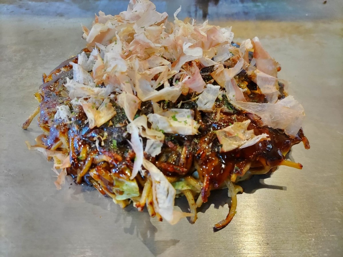 お好み焼きに焼きそば入れて焼いた「大阪風モダン焼き」 - 姫路経済新聞。