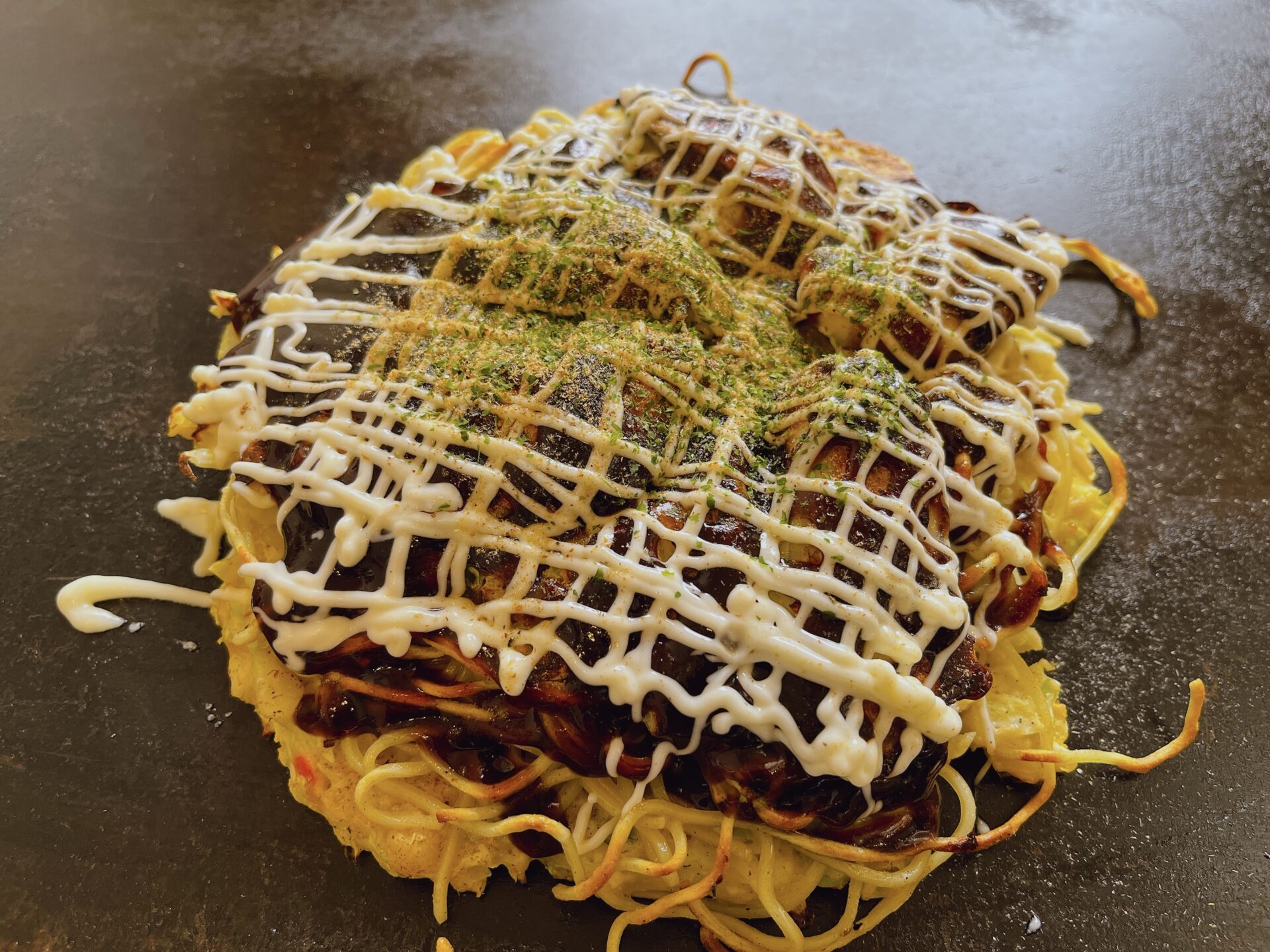 大阪風お好み焼きの一種「モダン焼き」といえば、お好み焼きに何が入ったもの?ご当地情報局。