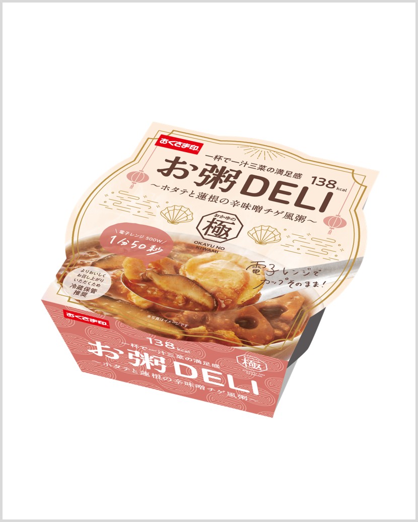 お粥DELI-ホタテと蓮根の辛味噌チゲ風粥-幸南食糧株式会社おくさま印のおいしいお米。
