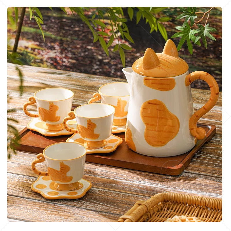陶器 ティーポット&カップ&ソーサーセット 結婚祝い 食器セット プレゼント ティーセット 急須 おしゃれ 湯呑 セット ティーポット 湯呑みセット急須セット ペア 夫婦 ギフト かわいい 猫 ティーカップ 北欧 二人暮らし 茶器 両親 茶器セット男性に人気の湯呑み。