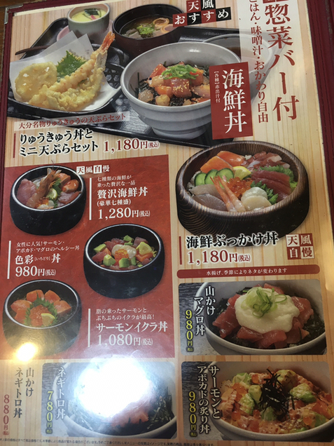 お品書き わさだタウン店天風。